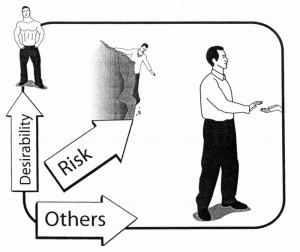 The symbol we use for evaluating the possibilities is the triangle which represents the three factors used to evaluate possibilities, which are: desirability, risk and others.